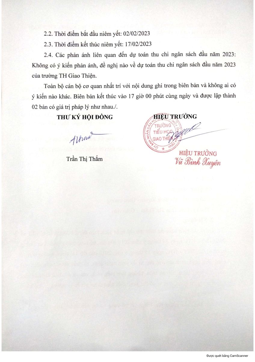 Biên bản kết thúc công khai dự toán thu – chi ngân sách đầu năm 2023