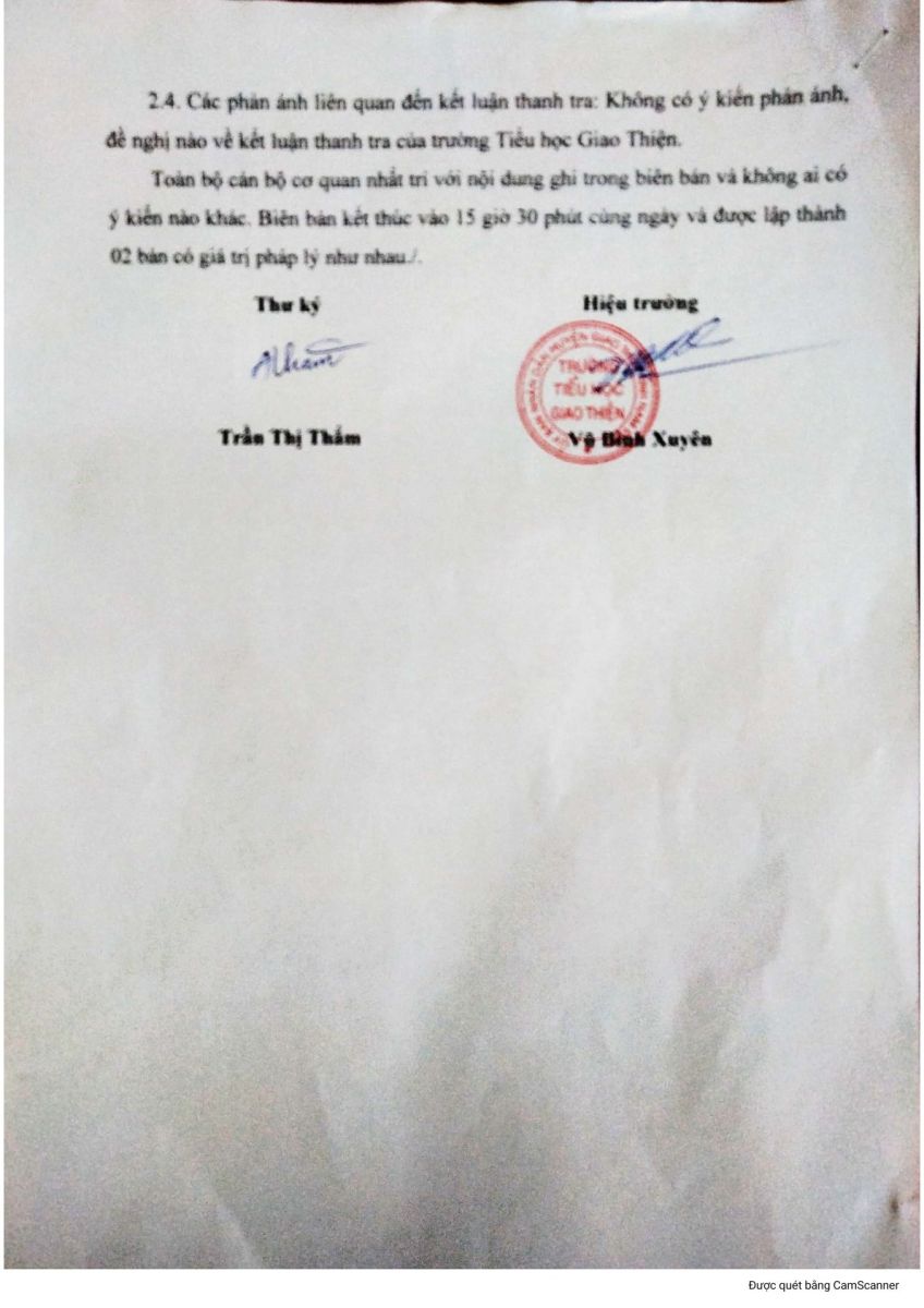 Biên bản kết thúc công khai kết luận thanh tra của trường TH Giao Thiện