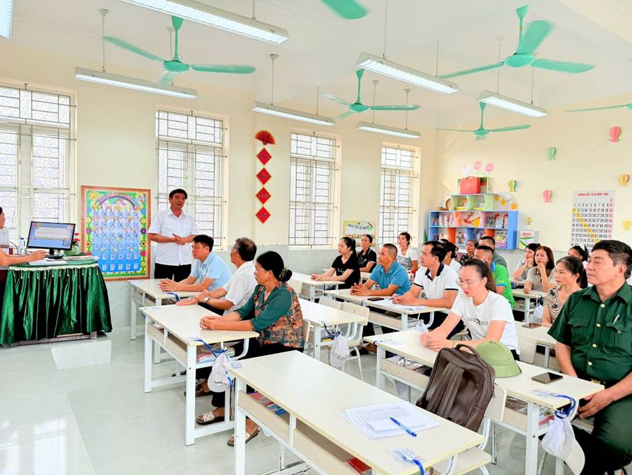 Giáo viên và phụ huynh chăm chú nhìn lại những thành công rực rỡ của Thầy và trò nhà trường trong năm học 2024-2025Và đặc biệt được nghe Thầy giáo Vũ Bình Xuyên- Bí thư chi bộ, Hiệu trưởng nhà trường đã tóm tắt một số thành tích nổi bật của trường trong năm học 2024-2025 và triển khai một số nhiệm vụ trọng tâm của năm học 2025-2026cùng thảo luận với các bậc cha mẹ để đi đến thống nhất và đưa ra những kế hoạch, giải pháp cho năm học mới.